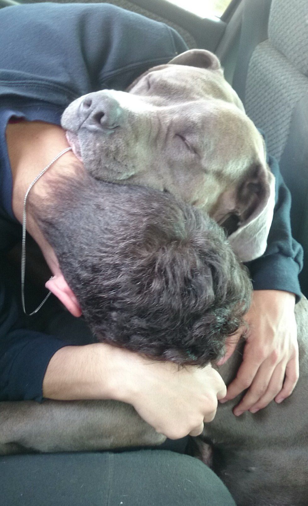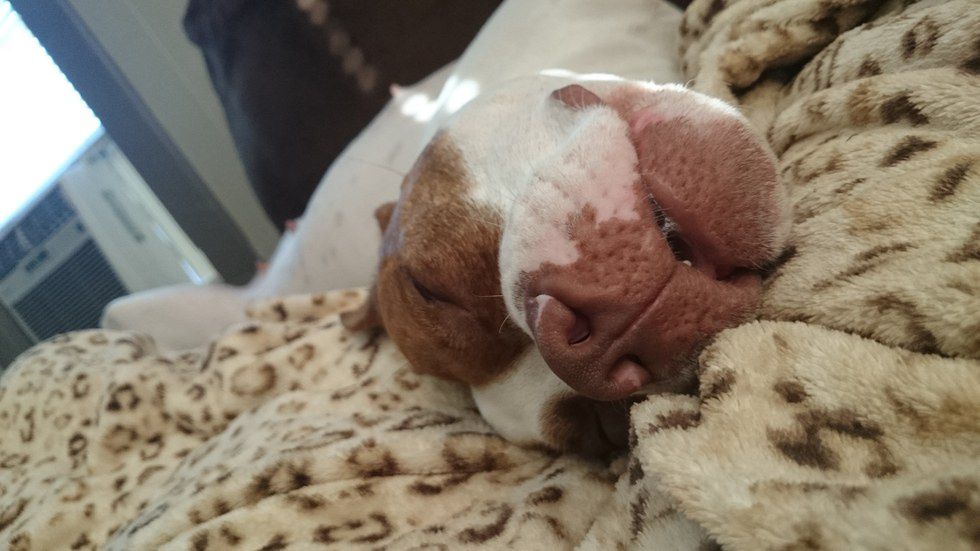 Now a little less than three years later, she chooses my side to sleep on and wants to always play with me. My boyfriend gets mad and even jealous that she gives me more attention than him sometimes. Almost two months ago, she had puppies. Usually they are aggressive with their offspring, but she loves when people come to see them. Every time people come to the house she runs up, just wanting love.