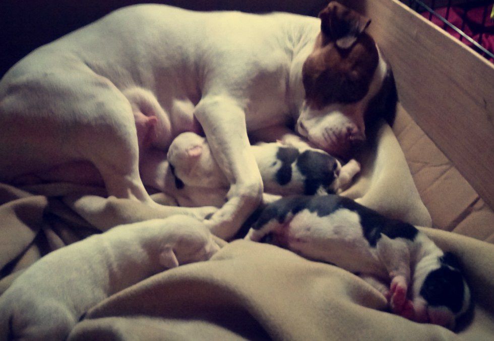 Then, she runs to the room where the babies are and she stands next to them, wagging her tail. I repost every pit bull post on social media reflecting their lovingness and kindness. Don't get me wrong — I love all dogs and animals. I grew up with labs, dobermans, yorkies and more. But when do you ever hear any hate or hear about any attacks from other breeds? You don't, because none of the other dogs are known as fighters.
