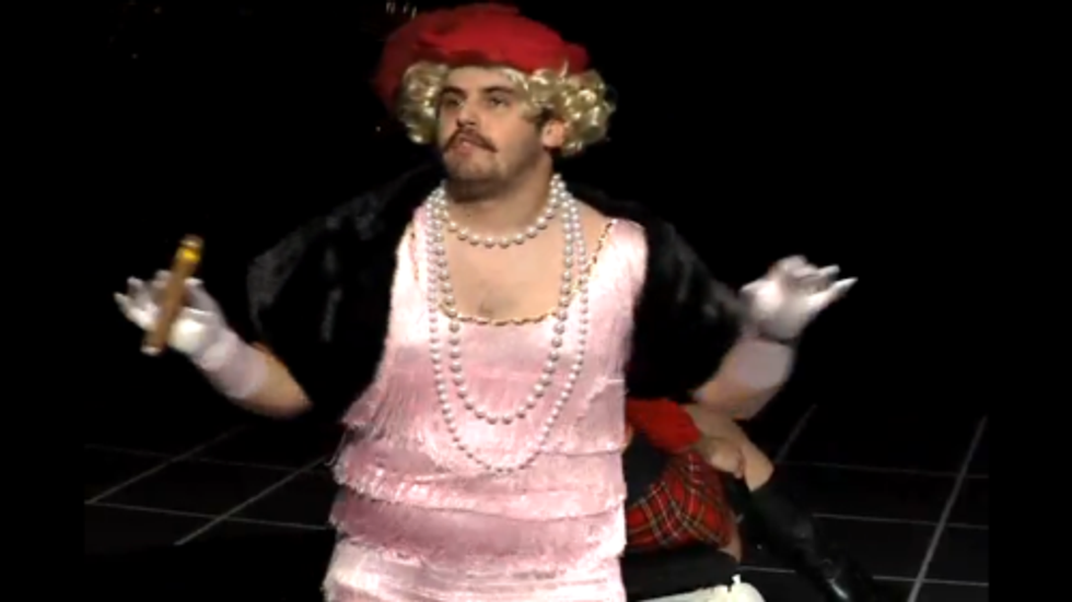 Everyone in this is extremely funny and not one actor or actress missed their mark. I truly don't know how they managed to keep straight faces during this show. My personal favorite character is Old Snatch (Pictured above). She's played by a large bearded man who has seen better days but still wants to help out Miss Cooter reunite with Dick.