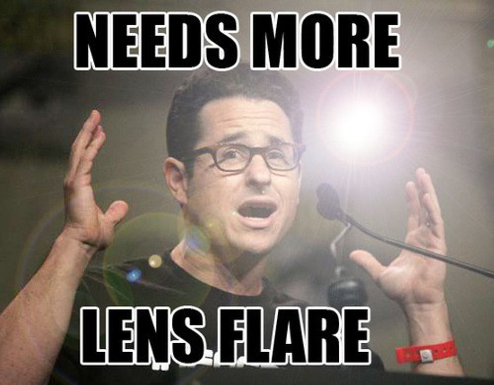 It's widely known among film nerds that Abrams has a thing for lens flares. There's like a million memes about. He almost used them in every shot in Star Trek and if you start to pay attention to them you will become enraged at how impossible that many lens flares could appear in one movie.
