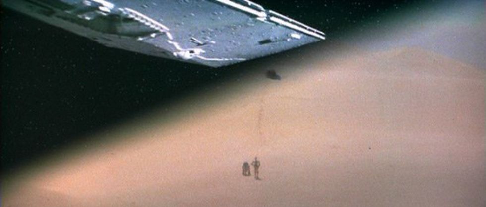 Star Wars is often known for its editing strategies. George Lucas used wipes for transitioning forward in the story. This type of transition pushes the other image of the screen and replaces it with the new one. It's a very dramatic and dynamic transition which is not often seen in any other movies as much as they're used in Star Wars.