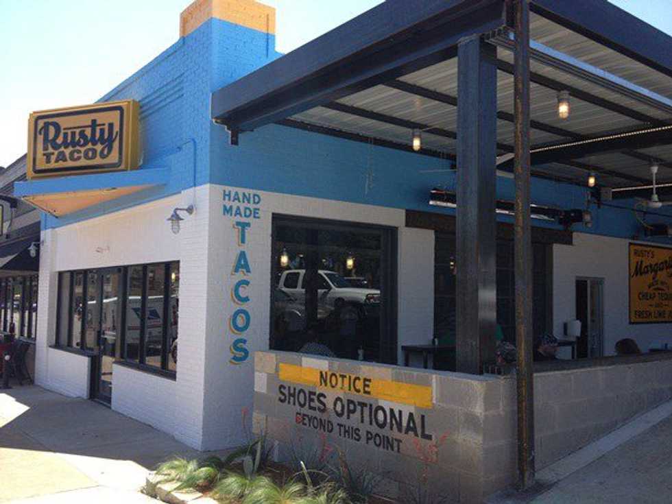 Open from 7 a.m. to 10 p.m. Sunday through Thursday and 7 a.m. to 12 a.m. Friday and Saturday, Rusty boasts of a laid back environment with a fan cooled open patio where “shoes are optional.” The Denton location has recently come under new management and the store seems to be doing well. In the middle of the day, there was a line out the door, but it was moving quickly. The average time for a taco seemed to be about two minutes, but it would be longer depending on the complexity of the order. And the best part, speaking as someone who works in a restaurant, everyone I saw had a smile on their face. Both customers and employees.