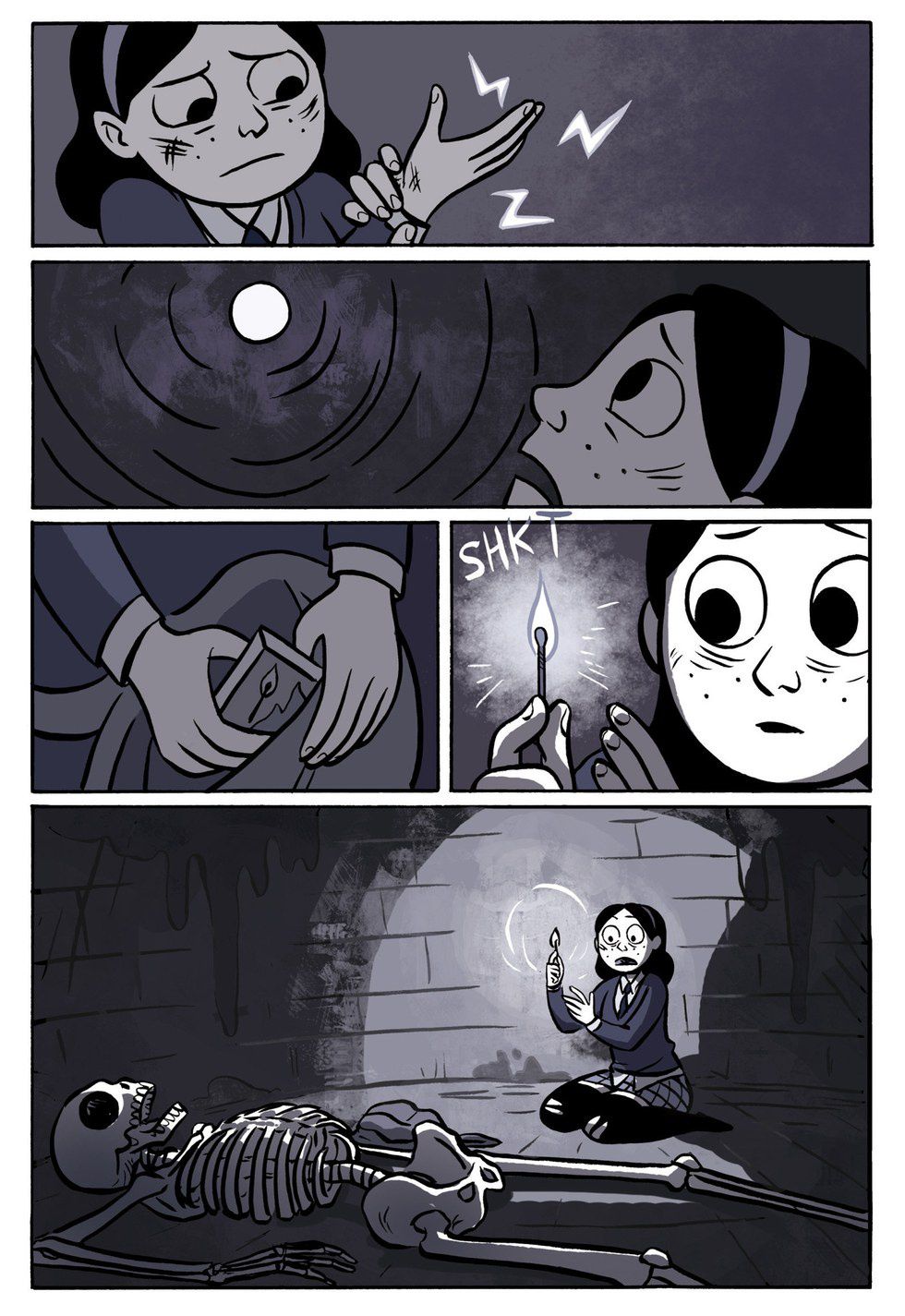 In composition, "Anya’s Ghost" is strictly structured. The pages are paneled one after another and flow well. There’s no bleeding into the gutters except for a few dialogue bubbles that break through panel frames. Some people find this structure boring because they prefer splash panels that speed up the action of the story, but I think Brosgol succeeds with her conservative pages instead of trying anything too exciting. The action is paced well within the panels without them exploding and risk confusing the reader.