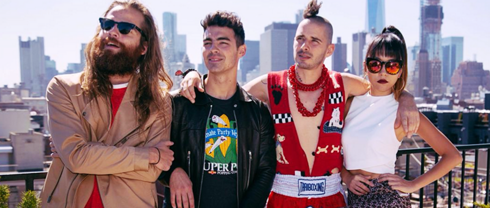 Truth be told, it's actually just normal relationship stuff interspersed with scenes of the band playing the song. It fits the song's content overall: Jonas is talking sweetly and respectfully to the woman of his affections. It proves the diversity of the band's lyrical content. Their earlier smash, "Cake by the Ocean," was a more aggressive come-on song set to an irresistible bass line and Max Martin-strength hooks. However, compared to the silliness and sexism that undermined the video for "Cake by the Ocean," where a diverse team of 20 to 30 women faced off against model and controversial comedian Josh Ostrovsky, also known as The Fat Jew, in a cake-throwing competition. He's landing hit after hit against these women while he's dodging cake like Batman. The video for "Toothbrush" is definitely a step up for the band.