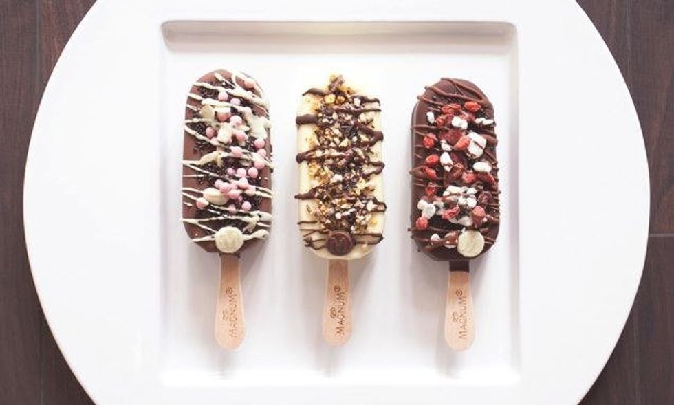 A little piece of heaven has come to Soho with the opening of the Magnum ice cream shop. My whole life, I have been a huge fan of Magnum ice cream bars, and when I heard that they were opening a shop in Soho, I had to go. So, one weekend I dragged my roommates-- who were not excited about the concept (I'll never understand why)-- to Soho so we could experience this little ice cream dream together.