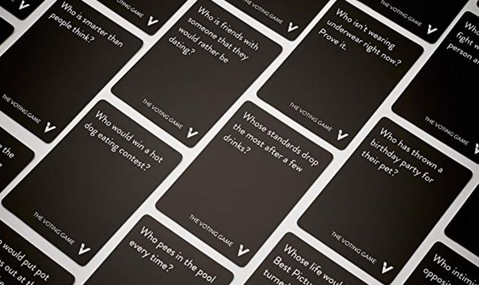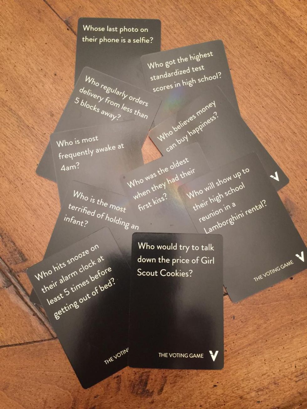 If you're looking for a new game to play with friends that isn't Cards Against Humanity, The Voting Game is for you. A card game that involves all players and can be played with up to 10 people, it starts with everyone getting a number card that identifies them for the remainder of the game. Then there are various questions cards which are read aloud, and the players get to vote for who they believe most fits the question on it.