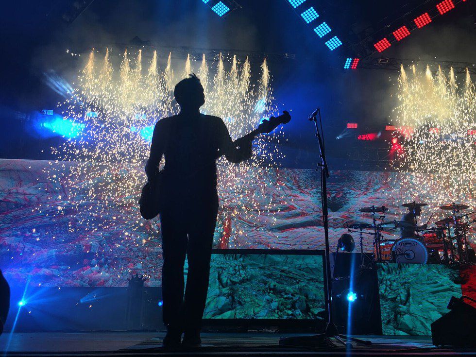 As for the band's natives, I was nothing less than ecstatic of their performances. Travis Barker, who is easily one of the best drummers to ever grace our planet, launched into a jaw-dropping solo about halfway through the concert. Often, drummers go nearly unnoticed under the hard-hitting lyrics and catchy guitar riffs, but it's impossible to ignore the talent Barker holds. No matter how soft or hard a song may be, his style is exclusive to his skill set and easily the backbone of Blink-182. Mark Hoppus played his usual demeanor, as the clown who can't help but to enjoy himself. His passionate delivery of Blink's set list, which ranged from songs from 1994 to their current 2016 album California, devoured my attention. From my position at barricade, directly in front of Mark, I couldn't help but to admire his earnest love of Blink.