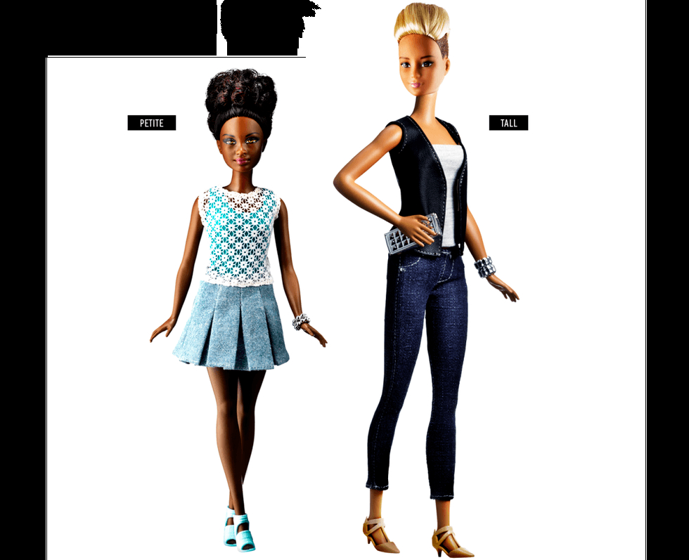 Once again, Barbie has revamped her look in the most drastic way yet by releasing four different body types, original, curvy, tall, and petite in all different skin tones and hair textures. In the new ad campaign, Barbie expresses the importance of being different. It shows a group of young girls, all different, playing with their Barbie dolls, again all different looking. Each of the girls then went around and told one another who they thought their Barbie dolls looked like, with one girl showing two different dolls saying that one looked like her, and the other resembled her mother. The message Mattel and Barbie are trying to convey comes down to the idea that "it doesn't matter what shape you come in, anything is possible." The other interesting fact about these new Barbie's is that they are all actually Barbie. In the past when Mattel would release a doll through the Barbie company they would be under the category of friends, each doll having a different name. This new generation of dolls are all considered to be Barbie dolls and NOT the friends of Barbie, again showing young girls that they don't need to look exactly like the original Barbie to succeed in any and all professions.