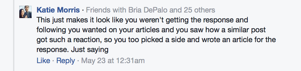 The goal of my article was to be thought-provoking and raise discussion. As a writer, I think it's really important to not only express your opinion but to listen to others with an open mind. The beauty of the internet is that writers and readers have a unique opportunity to communicate. Not that long ago, opinions were published in the letter to the editor section of a newspaper. Today, anyone can express their opinions on social media, blogs, or, like me, on Odyssey.