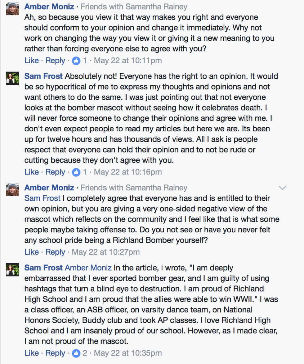 Last Monday, I published the article, It's Time To Change The Richland High School Bomber Mascot. My opinion is simple, "The RHS mascot glorifies violence and ignores the tragedy our contributions caused. The bombers is a direct symbol of the thousands of lives lost and it is a disgrace and embarrassment to celebrate it."