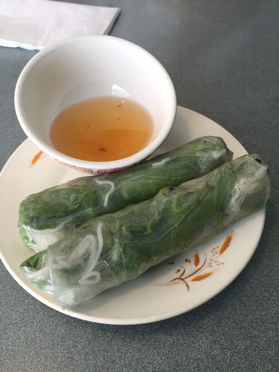 Ordering is pretty simple at PS1: appetizer and pho. For the first course, I recommend the grilled pork spring rolls (pictured below). Two rice paper wraps caressing pieces of BBQ pork, lettuce, bean sprouts, and rice noodles. Sounds killer, tastes even better. Pro tip: Ask for a side of peanut sauce; it doesn't come with the dish, but they do have it in the back. Dump some Sriracha in there to give your tastebuds an experience they will never forget. Another common choice for the appetizer portion is the egg rolls.