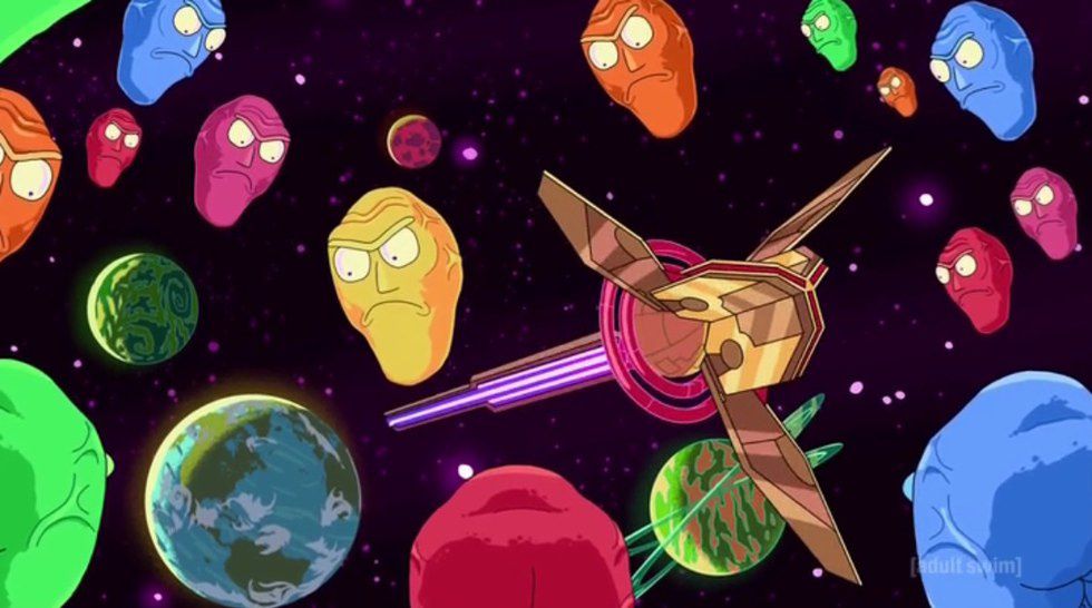 This episode deals with the idea of the multiverse, where there are an infinite amount of alternate universes and an infinite amount of our alternate selves. This episode specifically lays the existential nihilism on thick. With an infinite amount of Ricks and Mortys that exist in the multiverse, what significant meaning, if any, does the Rick and Morty we follow through the show have? How important are individual human beings when you can just move to another reality that has the same people in it. We see this idea presented again in the episode "Close Rick-counters of the Rick Kind" where hundreds of alternate Ricks are killed and hundreds of alternate Mortys are taken and used by an evil Rick (well... eviler) to mask his brainwaves from being detected by the authorities. In the episode "Get Schwifty", a giant head in space comes to Earth and transports it to his home world. There, him and the other heads hold several planets hostage. Each of the planets must create a catchy song or else their world will be destroyed in a twisted cosmic version of "American Idol".