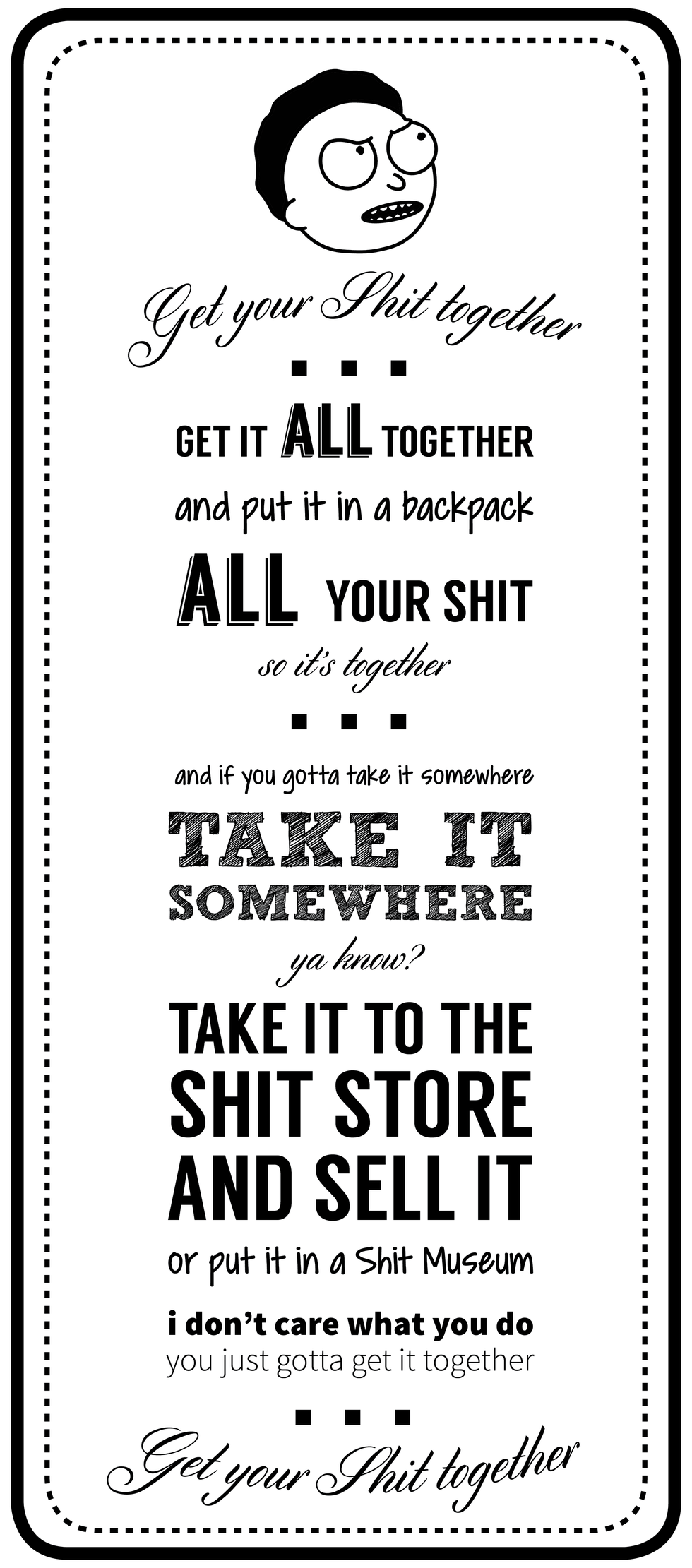All of us college students need to hear this more than once in a while. It is not just another great Morty-ism, but something I remind myself basically every day at the end of the semester. I am pretty sure it should be on every professor's syllabus as an early reminder.