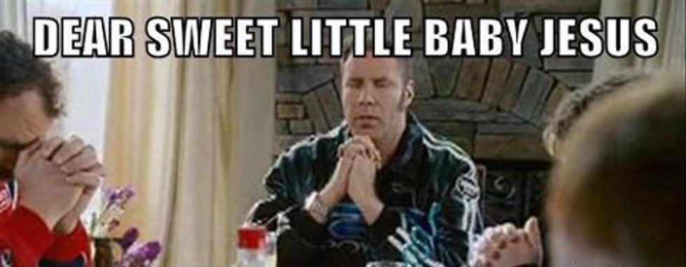 First, Ferrell as Ricky Bobby starts the prayer by referring to Jesus in his baby state using phrases such as: “Dear Lord Baby Jesus,” “tiny infant Jesus,” and “use your baby Jesus powers.”