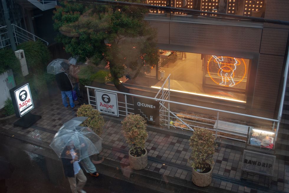 a.a.p.e. store in Harajuku, Tokyo. Along a street of other high fashion stores.