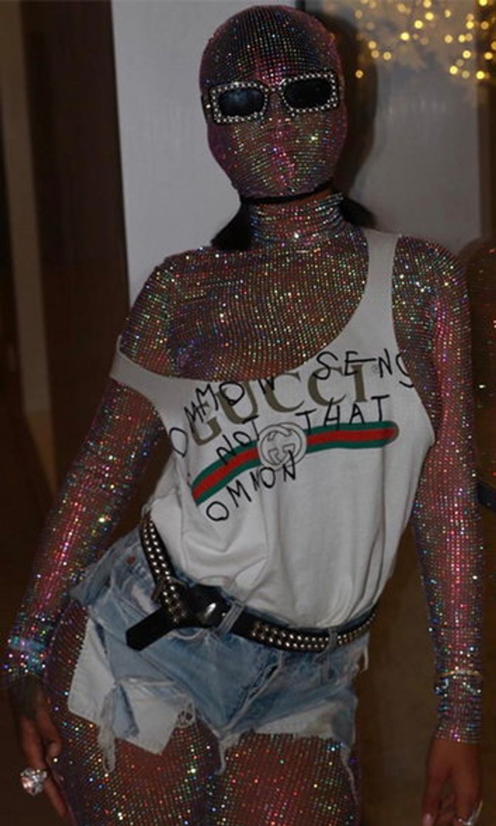 Who better to rock this outfit than Rihanna? She wore it so effortlessly, as she does everything. Although this outfit was taken right off the runway, you know that she had to add a little hint of her Fenty x Puma collection with it. Rih topped off her look with studded Gucci frames and her platform Fenty shoes.