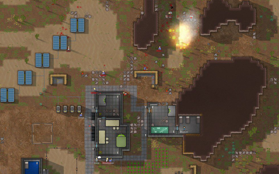 The combat system is absolutely amazing. Each NPC has a well-coded system for finding the best spot to take cover and lay down fire, and using algorithms that take-in the skills in combat, colonists can miss or hit their targets with great or terrible accuracy. Pirates come and attack, as well as androids. Sometimes, you are given the opportunity to save runaway NPCs from other towns and risk attack by their attackers. Combat is probably the most stressful thing in this game, as it takes time, effort, and resources for your colonists to heal after battle and rebuild as well as the frequency increases the larger and more successful your colony is.