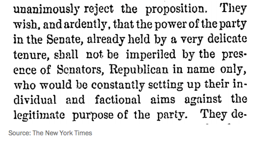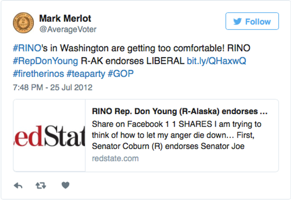 The term "RINO," a brilliant acronym used for a "Republican in name only" who consorts with the much-maligned Democrat Party, has achieved meteoric heights of popularity as of late within the GOP as the party continues to tear itself limb-from-limb and endanger those upon whom the title falls. The irony of this seemingly reflexive slur is that its meaning is lost in its ubiquity. The reasons to write any of these Republicans off as a disingenuous representation of the party ranges from the "eh, maybe" to as downright ludicrous as any accusation made in this tumultuous primary.