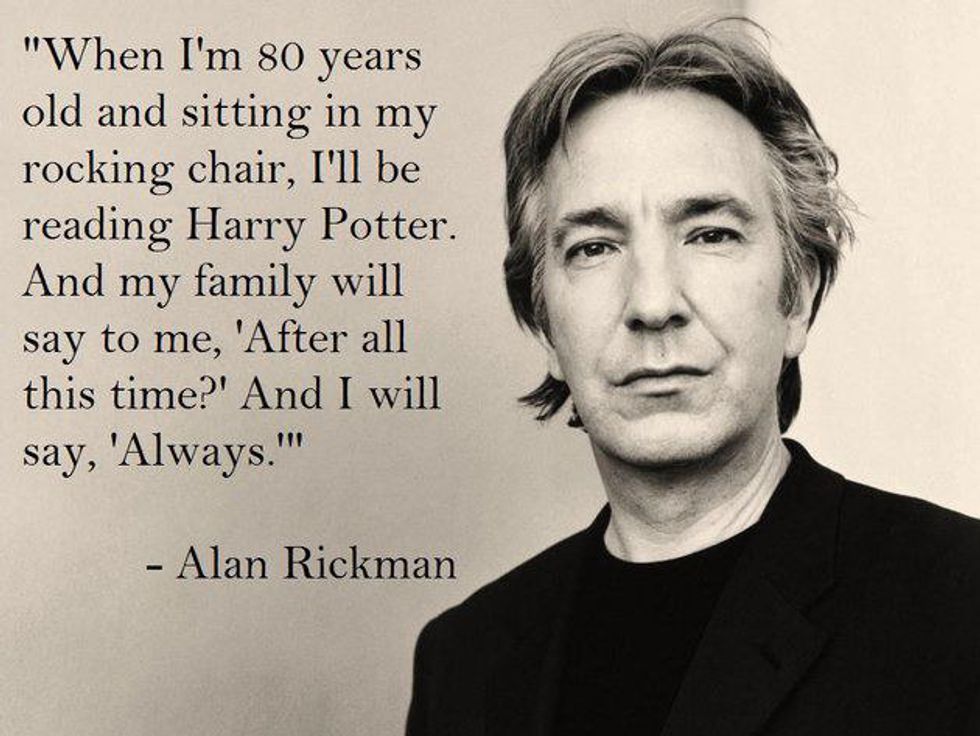 As Dumbledore once said, “To the well organized mind, death is but the next great adventure.” Rickman has left us for his next great adventure. Rest in peace, Alan Rickman, thank you and we will remember you…Always.