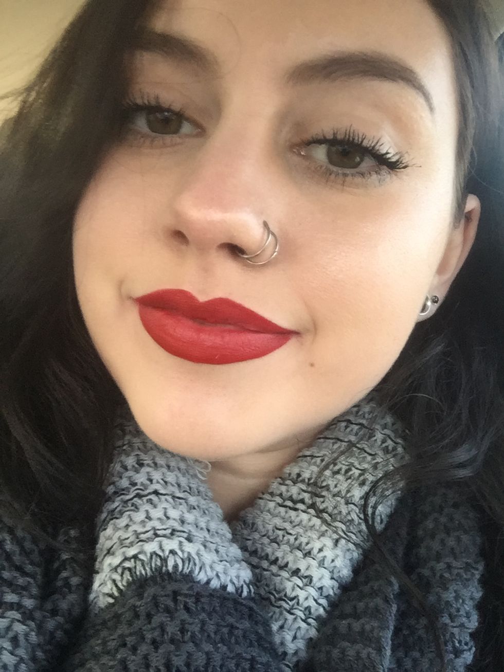You can see the ever so slight fade in the center of my lips but I think it held up extremely well. I reapplied and went on to my class. Afterwards, I went to the gym and didn’t want to be a douche and still wear lipstick so that is where my story comes to an end.