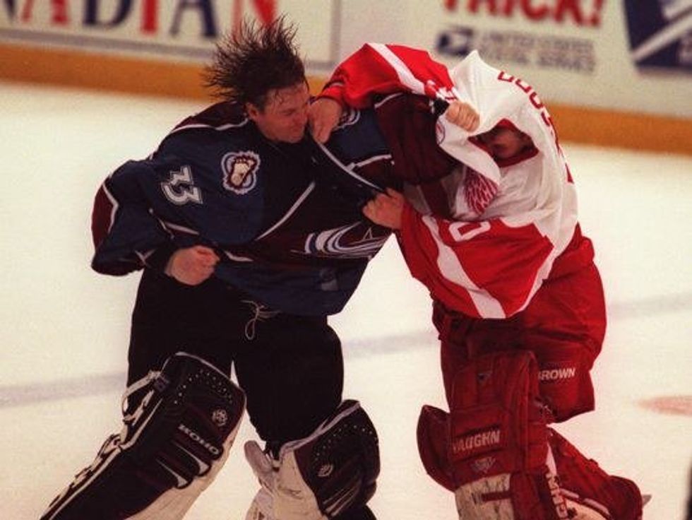 The feud declared itself in the 1996 Western Conference Finals (Game 6) when the Avalanche right winger Claude Lemieux gave a nasty check to Red Wings center Kris Draper. If you couldn’t tell from the pool of blood left on the ice, Draper's face was literally shattered. I mean LITERALLY. Draper suffered from a broken jaw and shattered cheek and orbital bone that left him with his jaw wired shut and a lot of stitches. Lemieux was ejected from the game after that hit, but that didn’t stop the Avalanche who upset Detroit in six games and won the Stanley Cup. That was just the beginning of the greatest rivalry in the sport of hockey.