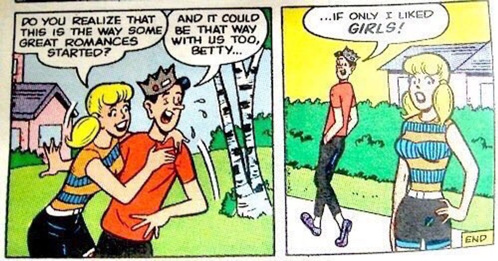 The director attempted to justify it, saying that "Riverdale" is a coming of age story and that Jughead has to discover himself, but Jughead never had to discover himself in the comics. Jughead had no illusions about his sexuality or romantic orientation. Heck, he's even touch-averse in the comic. So why not now?