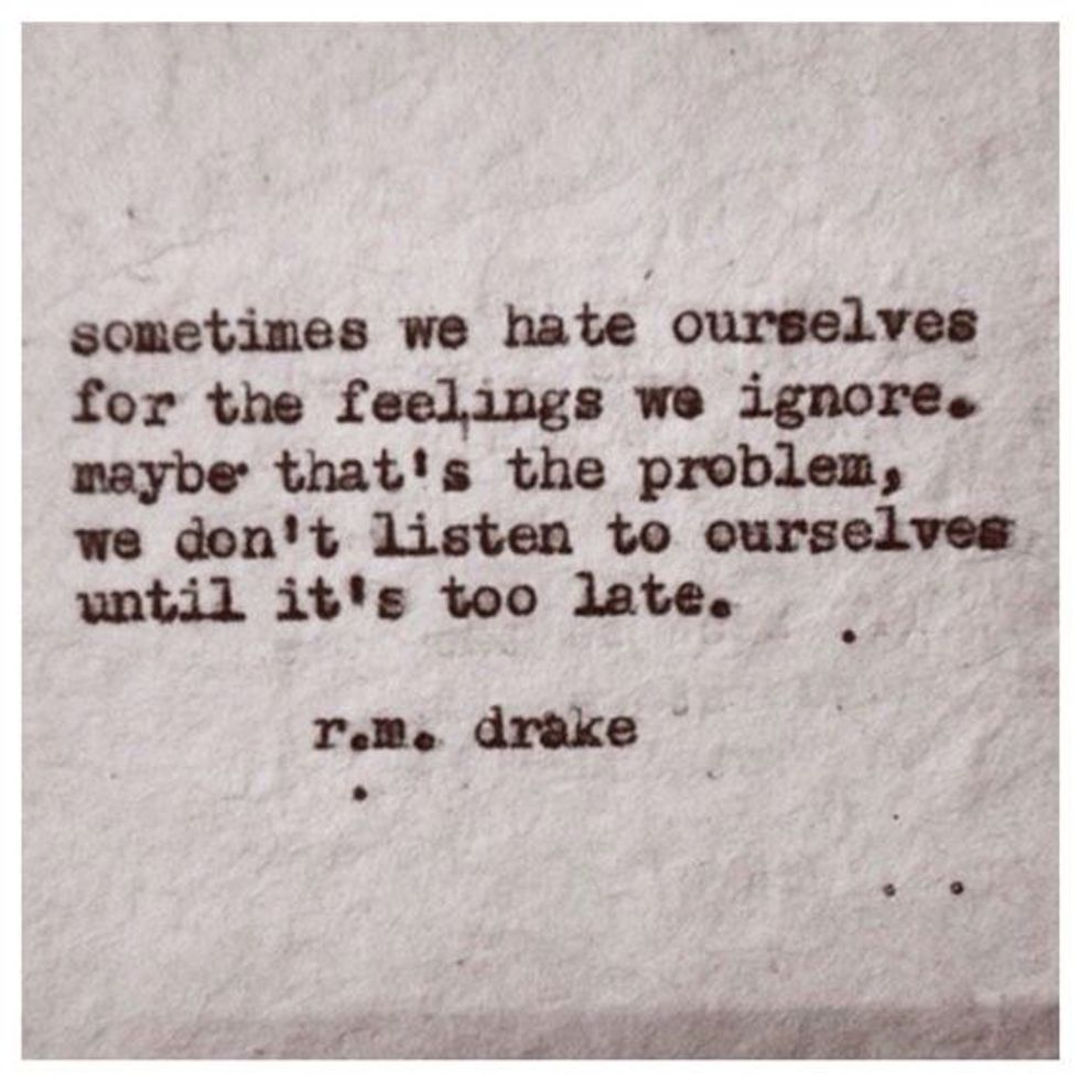 1. “sometimes we hate ourselves for the feelings we ignore.maybe that’s the problem, we don't listen to ourselves until it’s too late.”