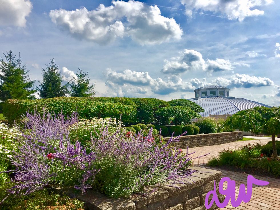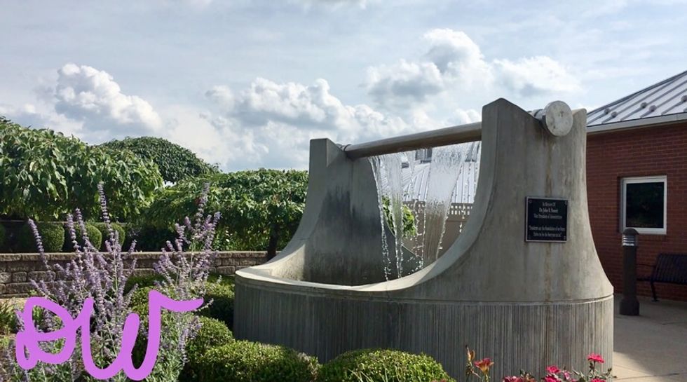 The gardens are surrounded by the Business School, Massey Hall, and Lafayette Center.
