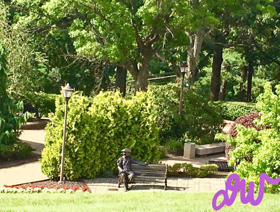 This is the iconic statue of Bronze Bob. It is a symbol of student engagement and giving back to the community, and it is the official landmark of the RMU campus in Moon Township, PA.