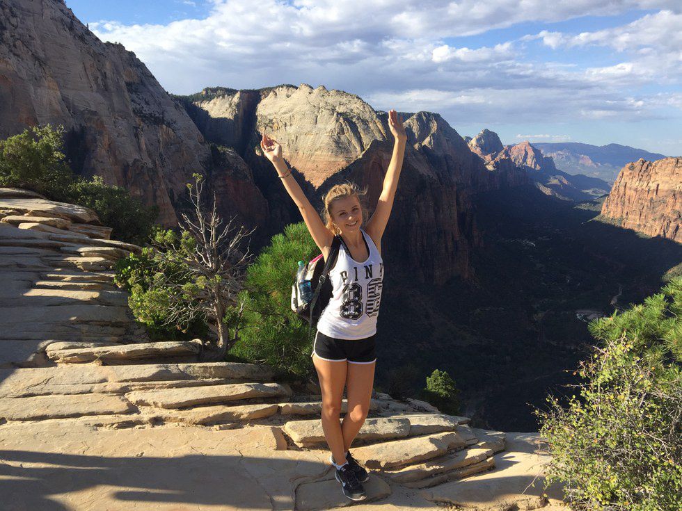 Most people wouldn't attempt a dangerous hike like Angel's Landing (six experienced hikers dead in the park's history) the day after collapsing from heat, but I was feeling either very brave or very stupid, so I set my alarm for 5:00 a.m. and took the bus to Zion National Park's most famous hike the morning of Day 4. The first half of Angel's Landing is a fairly normal (if steep) hike, but the second half is completed by making your way across rocks thousands of feet high with cliffs on either side. Despite using the chain attached to help with balance, I was about 75 percent sure that I would pass out again and it would be goodbye, cruel world. But somehow I stumbled my way to the top, and the view from the top tasted like victory.