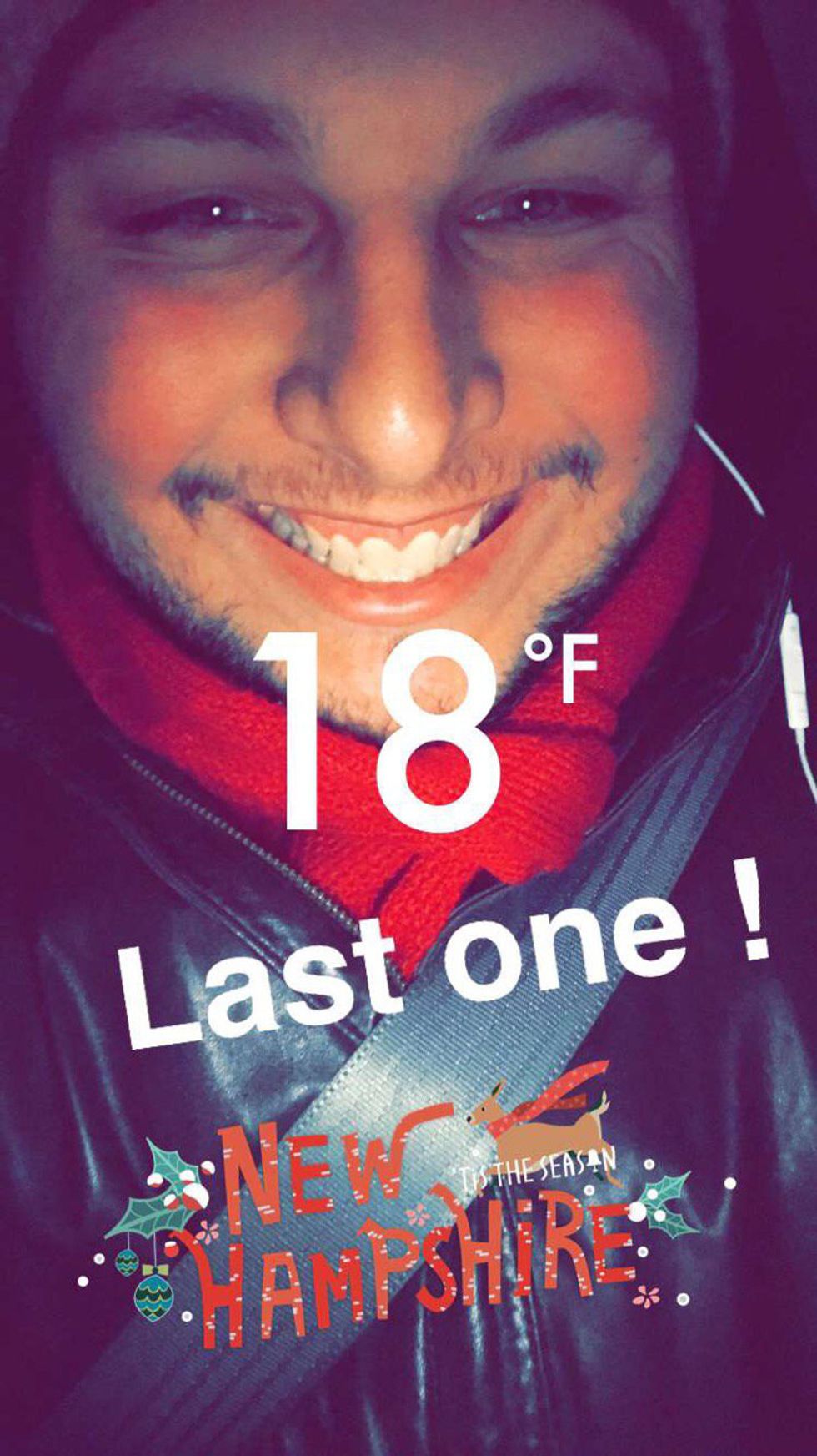 Traveling the Northeast was amazing! In New York, I saw the Empire State Building and Freedom Tower! I think my inner nerd showed most passing by Terry Town and Sleepy Hollow, I swear I saw the headless horseman. Then in Jersey where I saw snow for the first time! Then we moved on to Connecticut where we passed Waldo Pond! Finally sliding into New Hampshire at a brisk 18 degrees, the coldest weather I have ever been in!