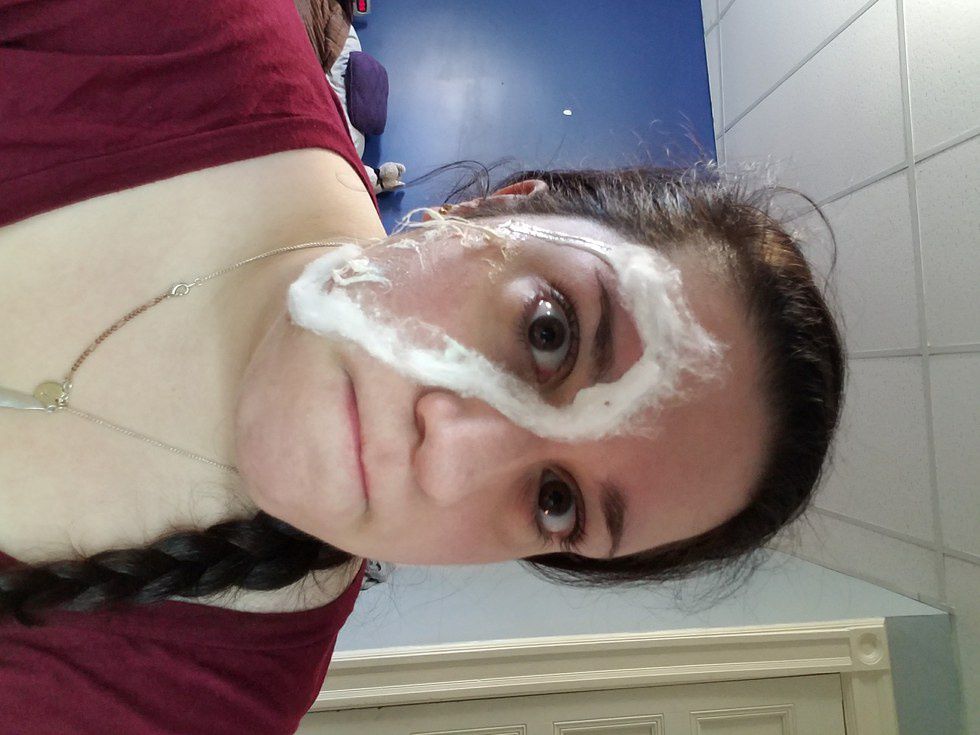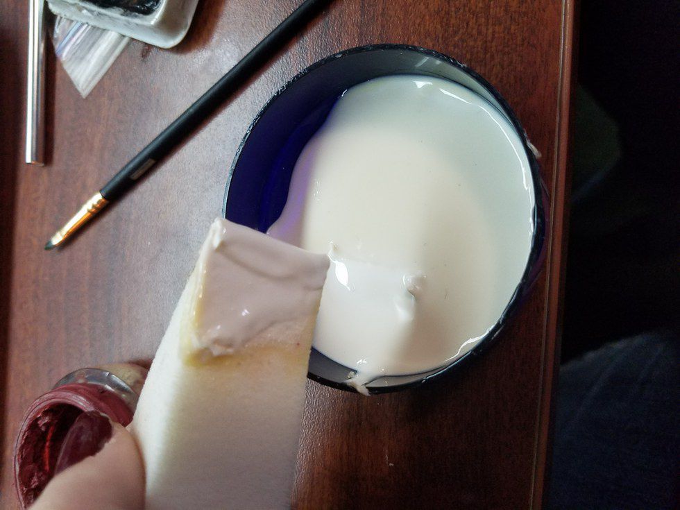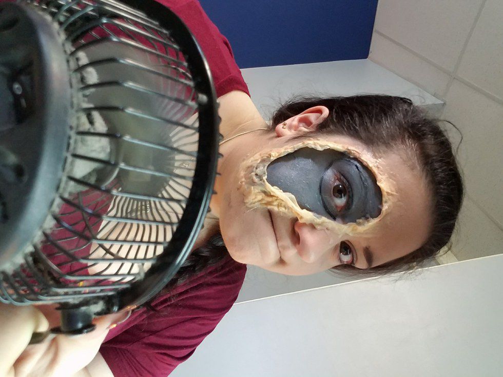 LET IT DRY! Latex can take a long time to dry and become pliable if you keep messing with it. Just go sit in front of a fan or go do some homework or chores while you're waiting. I decided to do my makeup on the other side of my face while I waited. I also covered my eyebrow with a light foundation to make hiding it easier.