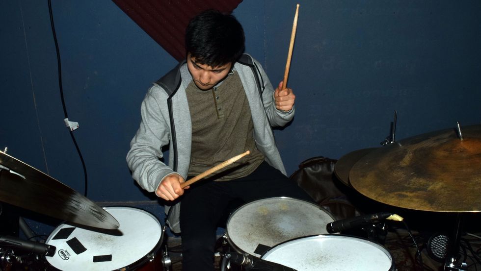 When they were traveling in the Subaru, they had to borrow a drum set at their shows since there wasn't space to travel with a full drum kit. With the van now, they actually have enough space to bring all of the equipment they need.