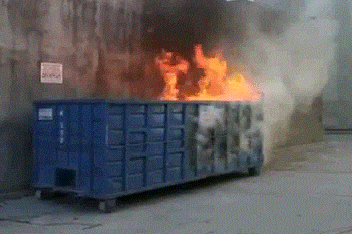 Like, literally, a dumpster fire.