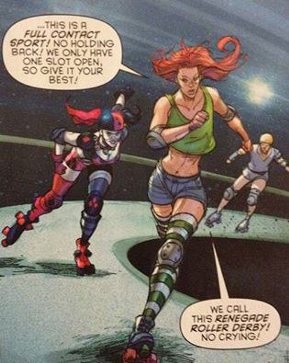 Caption: "Looking into roller derby today, I probably can't play until next semester, but it's exciting!"