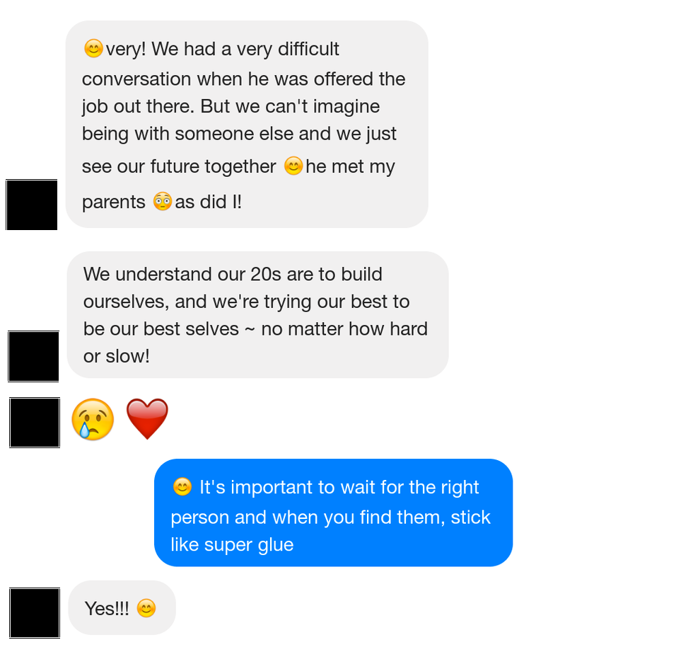 A friend of mine recently expressed her deep love for her boyfriend to me, but also her extreme sadness at having to be apart: