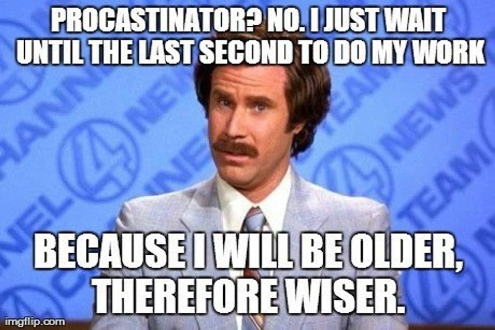 A college student's explanation to themselves when they realize they may be putting off their work a little too long.