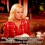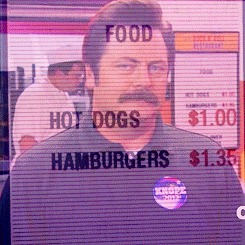 Whether he is taking advantage of a free breakfast buffet or boycotting the latest organic, healthy food, Ron Swanson just gives me more reason to want to applaud. I have a serious food addiction. Legitimately. My bank account shows that's where that majority of my money goes. I would drop any amount of money on food without thinking twice; but if it were clothes, I would be asking, "Is this really worth the money?" With food, the answer is always yes.