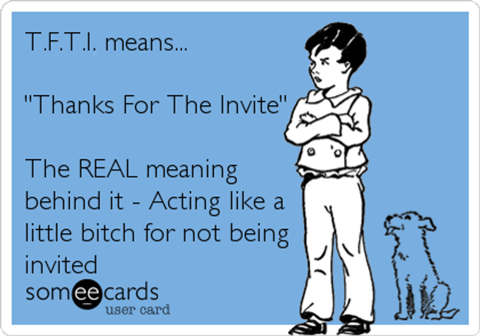 You reply to each one of their snap stories with "tfti" even though you were in class when they went out to eat.