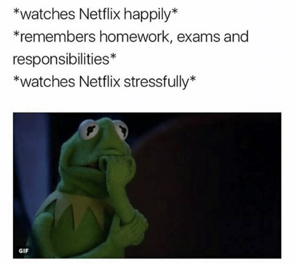 You know each other's deadlines and yet still decide a movie night is a good idea when you have essays due the next day.