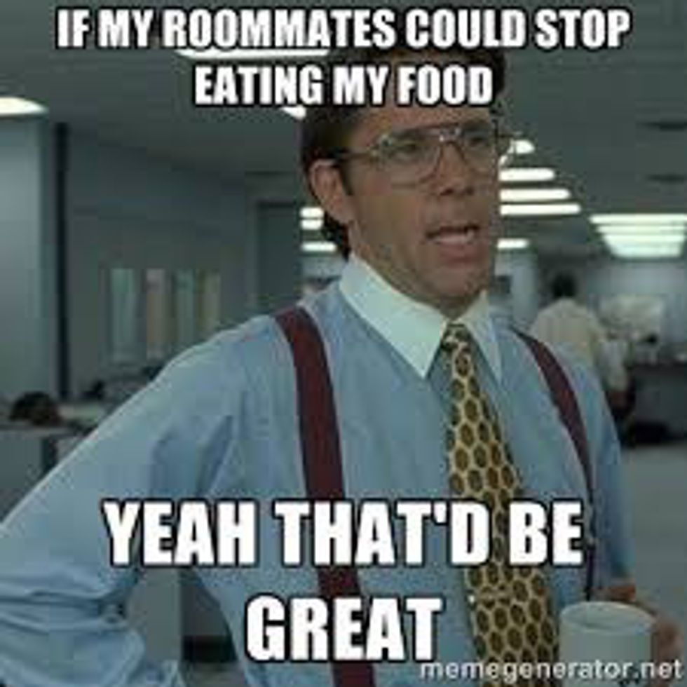 We can all admit that dining hall food isn't the best and everyone would rather have the comfort of the food that they enjoy from home. But again, if you have a roommate you need to ask if you can their food and make sure that they are ok with it. Your roommate is spending their money on their food and that is something that as roommate, you need to respect one another and then everything will come into place.