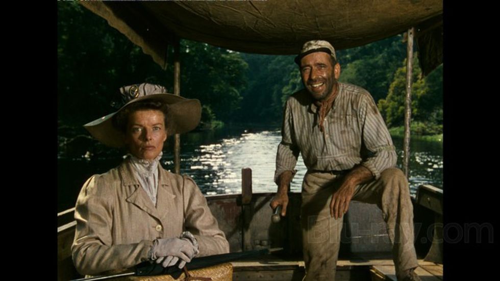 The rest of the hour and forty-five minutes are spent on a nonsensical plot surrounding a groups of criminals and stolen nitroglycerin, but the most infuriating aspect of the entire film is that, eventually, the leads eventually find themselves on a boat packed with explosives and sailing down raging rapids, a cloyingly, frustratingly obvious reference to The African Queen.