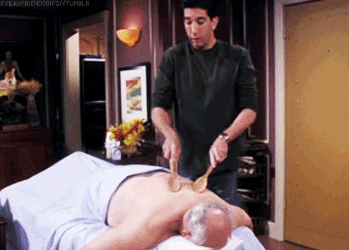 Does everyone forget about this? Ross seizes on the opportunity to massage one of Phoebe's clients, who he perceives to be a hot woman. Instead, as soon as he claims to be a masseuse as well, the woman steps aside to reveal that her father is actually the one in need of relaxation. Instead of laughing it off and saying he was joking, he goes through with the massage!