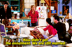 I'm pretty sure it's illegal to be married to someone without them knowing. If it isn't, it should be. And, seriously, how sh*tty was it for Ross to lie to Rachel so blatantly about their marriage? Geez, Ross, communication!