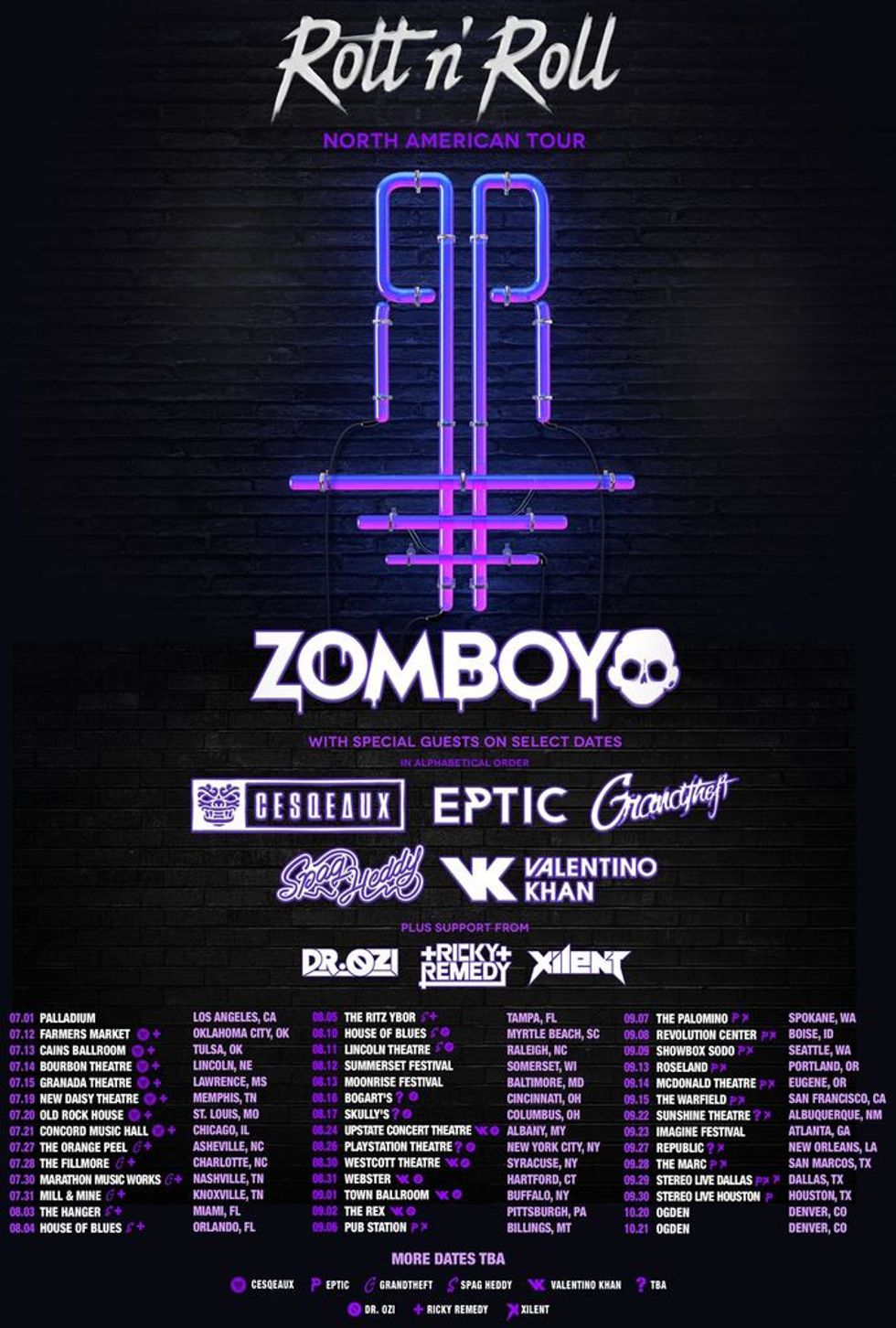 Now, he is traveling across the country, running with his squad of Zombmen, and hitting every bass city on this 44 stop tour which kicked off July 1st in Los Angeles. Along with, what I imagine will be a killer production, Zomboy’s crew has fashioned together a group of openers that will be sure to have the whole place jumping once the doors open. Cesqeaux, Eptic, Grandtheft, Spag Heddy, Valentino Khan, Dr. Ozi, Ricky Remedy, and Xilent will all be joining the ensemble for these pure nights of mayhem. We wish all of them were going to be there, but please check the tour poster below to find select dates with these special performers.