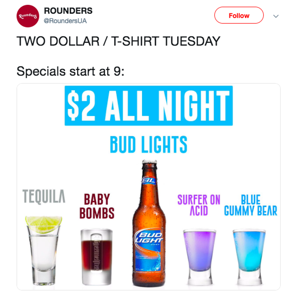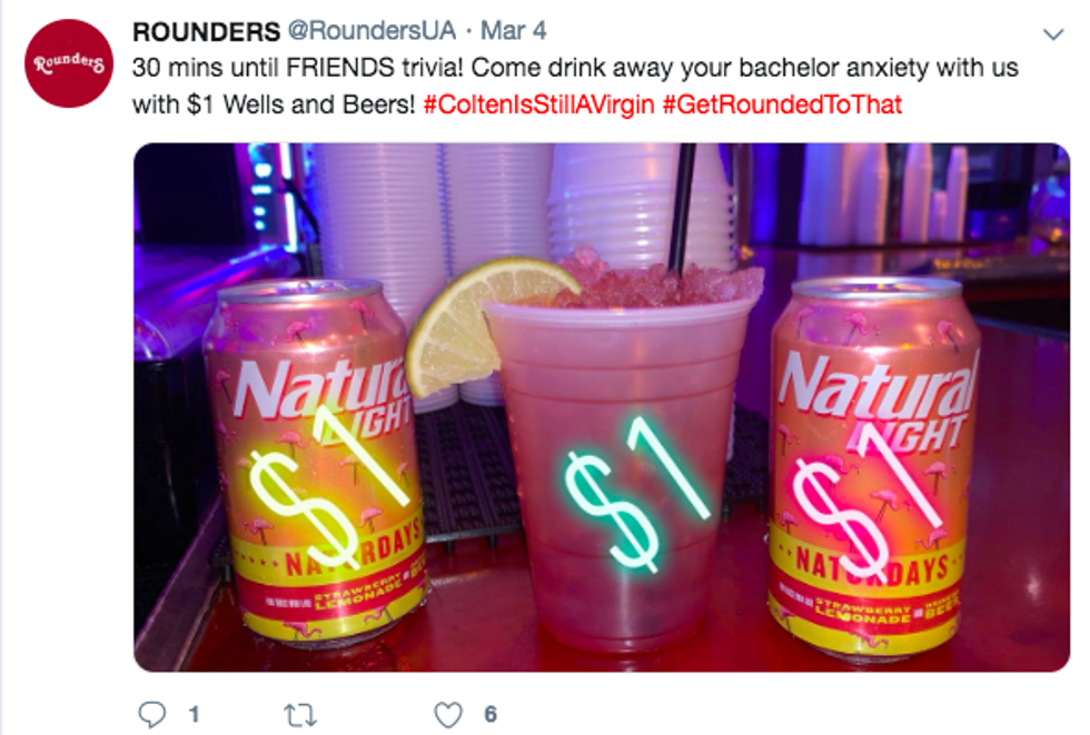 If these drink specials don't make you want to get over to the Strip, nothing will! Rounders offers tons of drink specials throughout the year, especially on special nights like this past week for the episode of "The Bachelor."