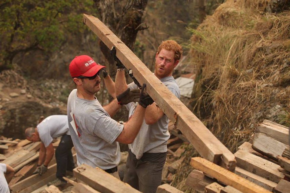 April 5: Prince Harry helped builders rebuild a village in Nepal that was destroyed by the earthquake in 2015. We have recently seen Prince Harry taking a more active role in his Royal duties, often going on trips on behalf of the Queen. This trip was intended to be five days long at the end of March, but the Prince extended the stay after being moved by the stories of the earthquake's victims. Working with Team Rubicon UK, Prince Harry got right into the middle of the action building and spending time with locals.
