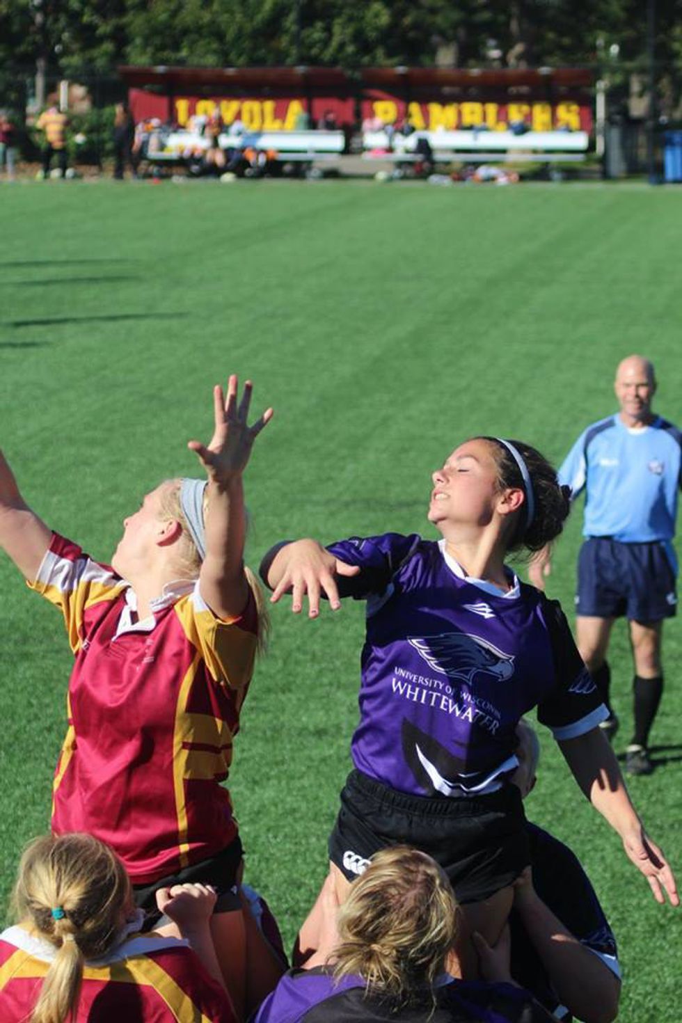 Rugby is a sport of sheer endurance. A sport where girls like me, who wouldn’t exactly be described as “athletic,” get a chance to be an MVP. Our muscle, giant thighs, and perseverance pushes our team, supports our backs, and holds up our scrums. This is the first sport where I am not picked last. My position on the team is the prop, which is usually reserved for the stoutest player on the team. Our scrums and our hooker relies on my leg and core muscle to hold them up. So what if we’re the slowest girl on the field? When you can tackle, ruck, and scrum, nobody cares how fast you are. That’s what the backs are for.Prop running