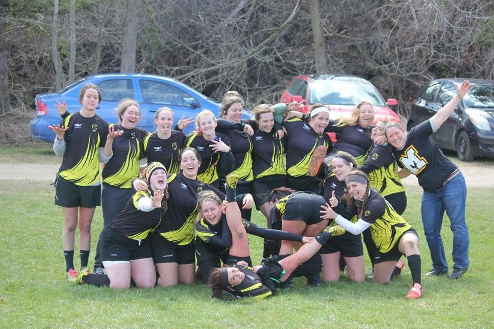 Rugby is not a sport for babies. You run, tackle, scrum and maul while having to fight off the other team, protect your fellow teammates and score a try all at the same time. While some might think that it's too scary or they'll get hurt, I say to those people, you're fiiiine. There definitely are dangers to the game, but the game itself is thrilling and beautiful. Working with a team, battling for a win and bonding with your teammates is what makes rugby, rugby. Plus, you get into amazing shape while have a good time. But most importantly, rugby teaches you crucial life lessons, and even though I haven't been playing very long, I've already started to learn them. Here are some things that rugby teaches you:
