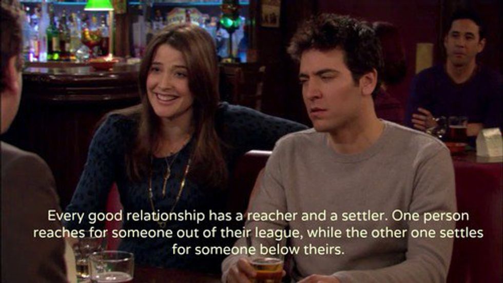 Reacher/Settler Theory: The idea that, in every relationship, there is one (the settler) who is out of the others (the reacher) league.